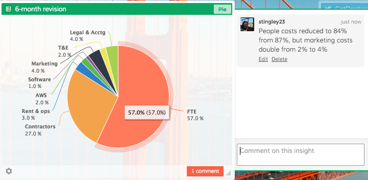 Any big differences? Nothing shocking, at least from an ‘expense by category’ perspective. as Not huge, and our % held steady by category. People costs ticked down 3% as we dialed in our main out side contractor, and our marketing share doubled from 2% estimate to 4% of total budget. That’s due to us getting some more detail around key events and trade shows that we plan to exhibit at or attend. We still don’t plan on spending any money on Google Adwords.
